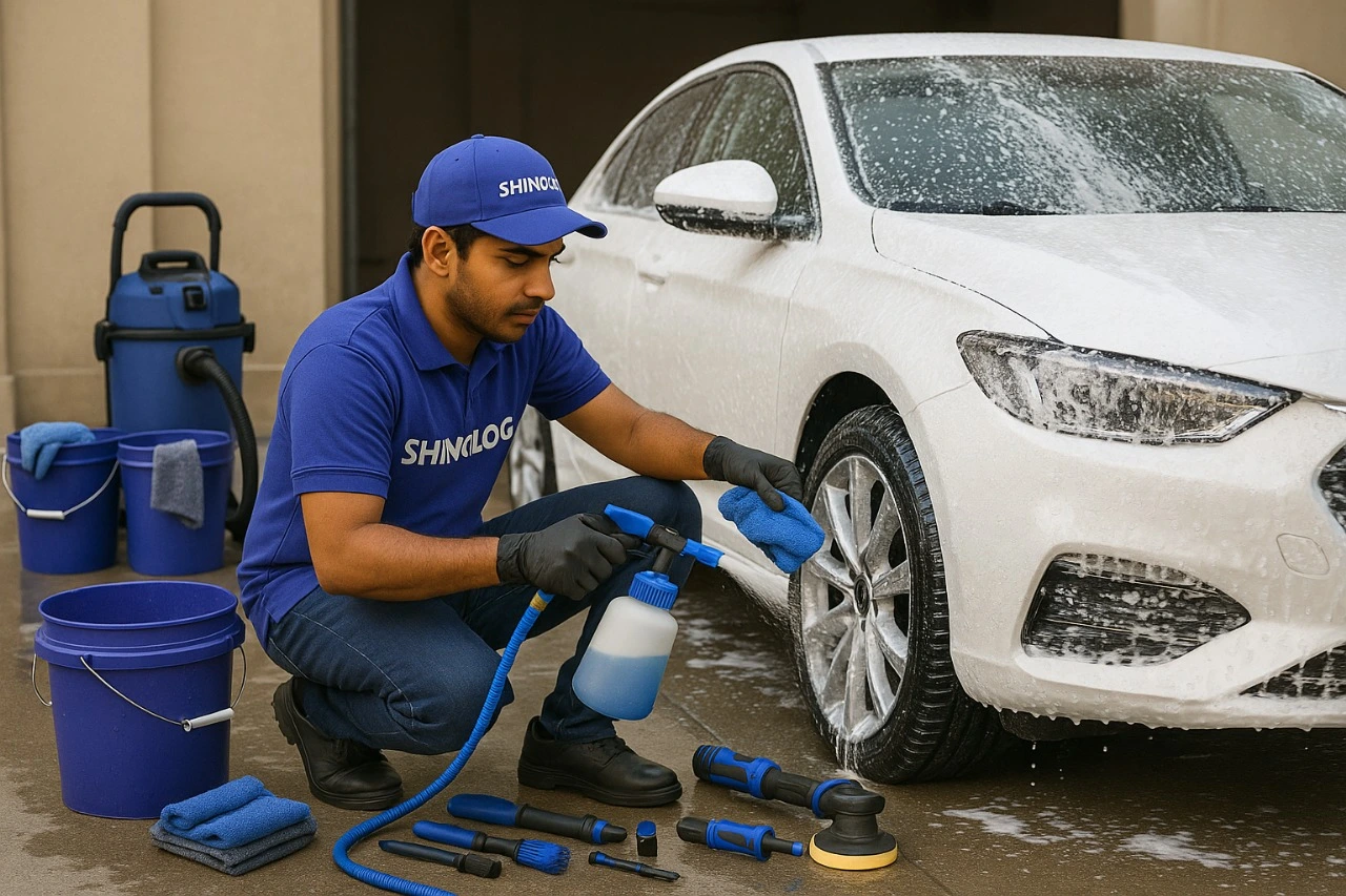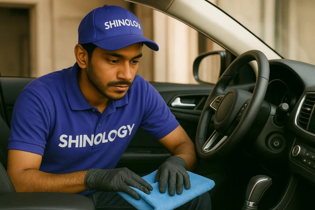 Shinology Services brings all necessary equipment for car cleaning, while the client provides the water—ensuring a smooth, hassle-free experience.